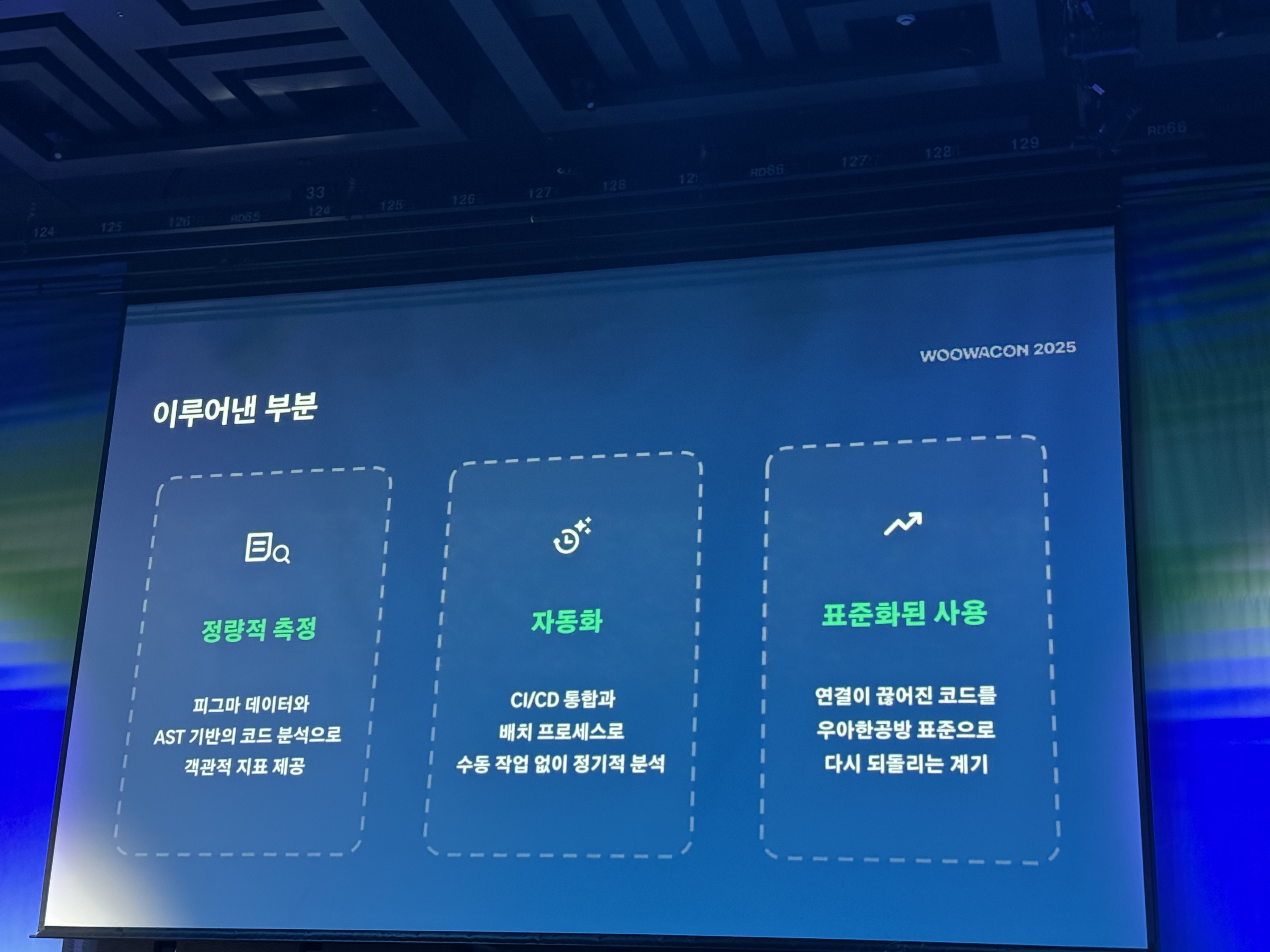 그 외에 프론트엔드 섹션은 대체로 내가 어느 정도 이해할 수 있는 정도의 기술 난이도라서 대강 어느 정도 다 이해가 되었고, mcp와 같은 AI 기술을 기존 프론트엔드 진영의 기술과 접목해서 우아한 형제들에게 더 핏한 결과물을 내는 게 똑똑하게 일하는 것 같아서 멋있고 좋아보였다. 나도 저렇게 똑똑하게 일하고 싶다고 생각이 들었고, 긍정적인 자극을 많이 받았다.